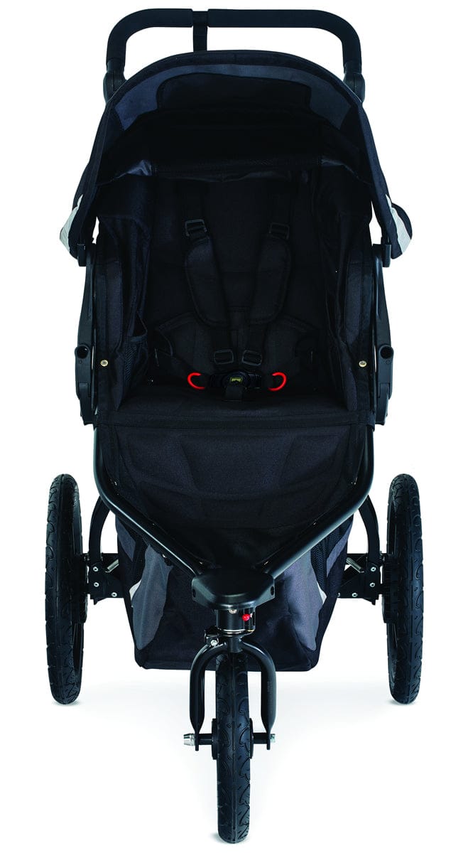 - On & off road, swivel-locking front wheel swivels for easy maneuverability or locks for stability when jogging on- or off-road.