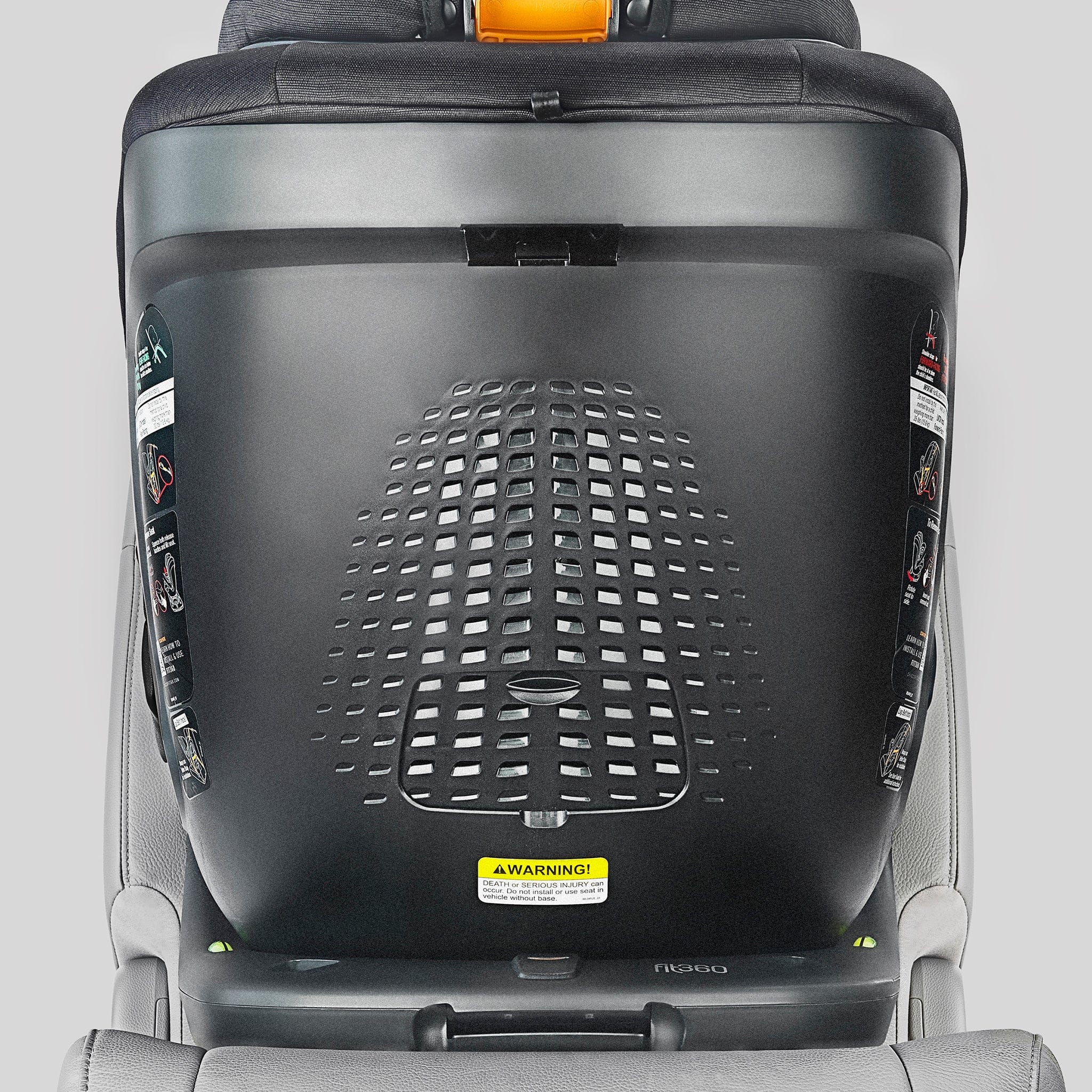 - Built-in, open ventilation on car seat back allows airflow, providing a consistently comfortable ride
