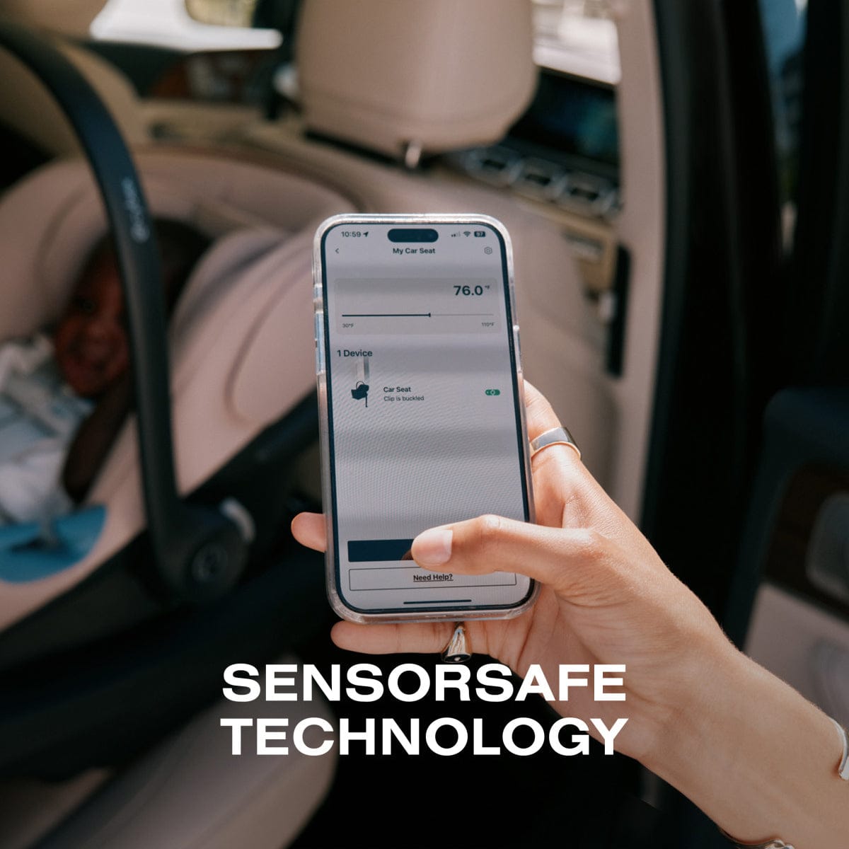 - SENSORSAFE TECHNOLOGY: SensorSafe™ keeps you informed through instant smartphone notifications, so you’ll know if your child’s chest clip opens, the car becomes too warm or cool, or they’re left alone.