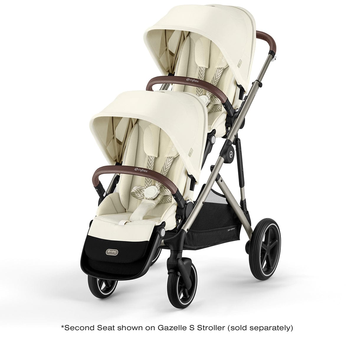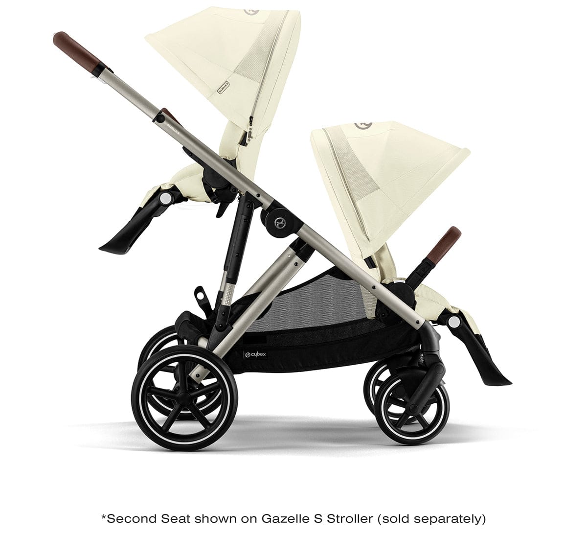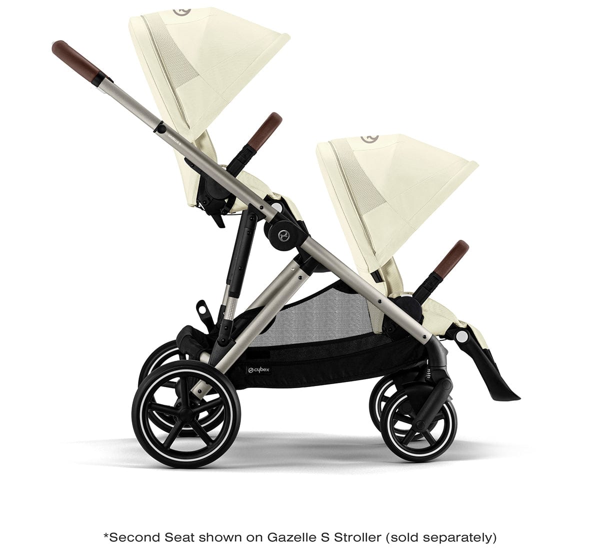 As your family grows, convert the Gazelle S from a single to a double stroller with a second full size seat to allow two children to ride at the same time. Each Gazelle S seat can be used in parent-facing or forward-facing mode and can be attached on either the stroller’s upper or lower positions.