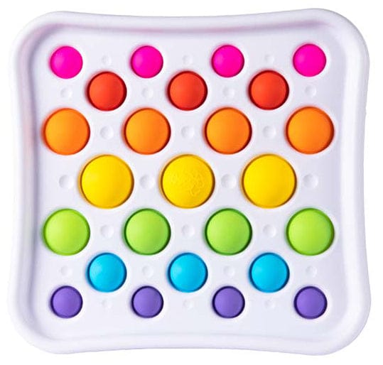 Built into the strong, high-quality plastic frame are 25 dimpl™ bubbles in four different sizes just waiting to be pushed, poked, and popped again and again.