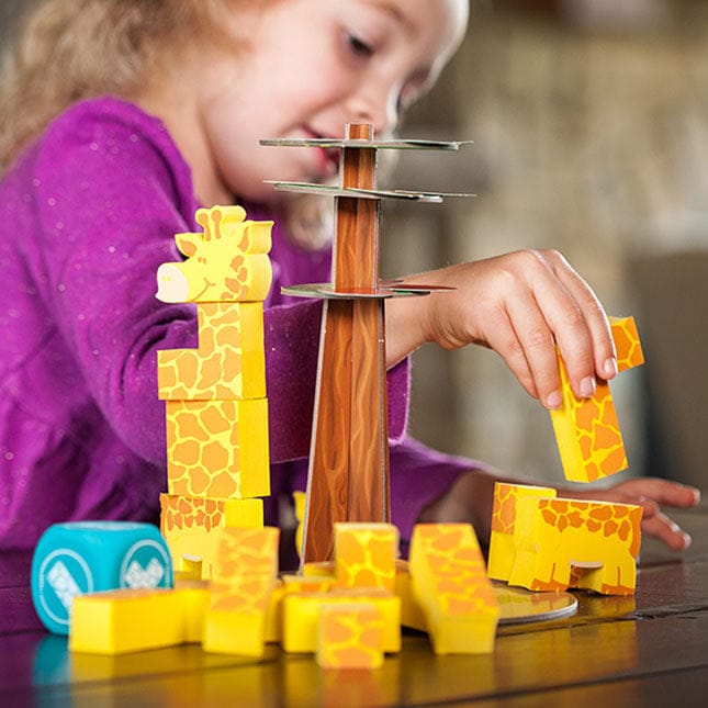 But beware. If your giraffe tumbles, you’ll have to start all over, and the other giraffes might start chanting – “Icarus lost his nee-eck! Icarus lost his nee-eck!” Once all the leaves have been grabbed, everyone flips them over at the same time to count up their points. The player with the most points wins the game! Designed with soft yet sturdy foam pieces and an engaging gameplay that emphasizes the balance between risk and reward, Neck of the Woods is one game that’s sure to be played again and again!