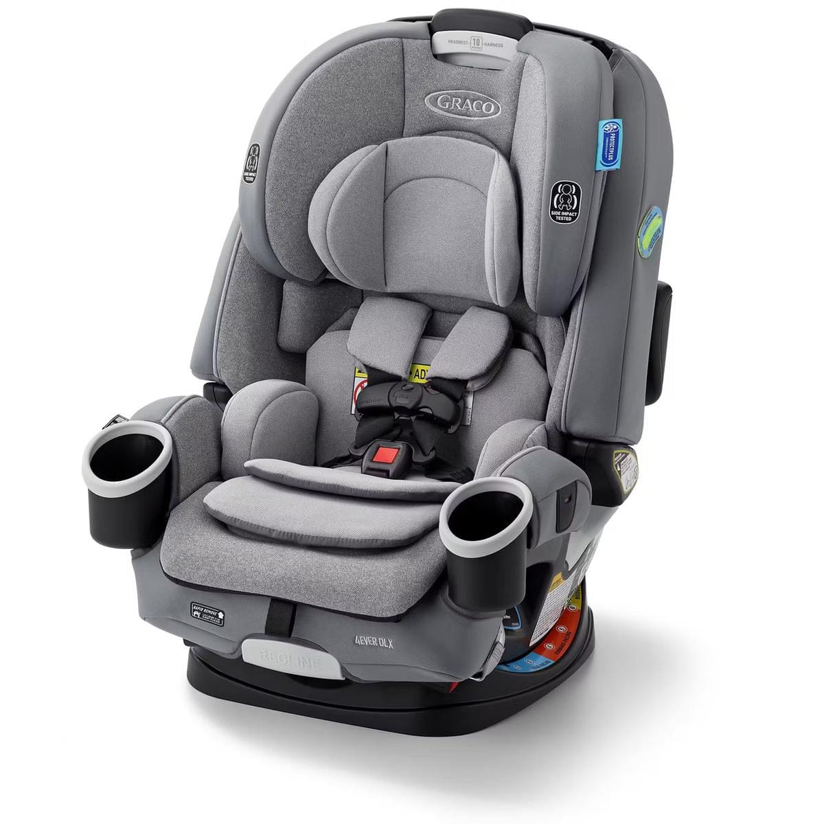Graco® 4Ever® DLX 4-in-1 Car Seat gives you 10 years of use with 1 car seat! The 4Ever® you know and love features a RapidRemove™ cover, an integrated belt lock-off for easy installation and rubberized Fuss Free harness storage for extra accessibility. It is comfortable for your child and convenient for you as it transitions from a rear-facing harness (4–40 lb) to forward-facing harness (26.5–65 lb) to highback belt-positioning booster (40–100 lb) to backless belt-positioning booster (40–120 lb). The Simply Safe Adjust™ Harness System and 10-position headrest lets you adjust the harness and headrest together with no rethreading. The 6-position recline keeps your child comfortable, while the InRight™ LATCH system makes installation easy. It’s the only car seat you’ll ever need!