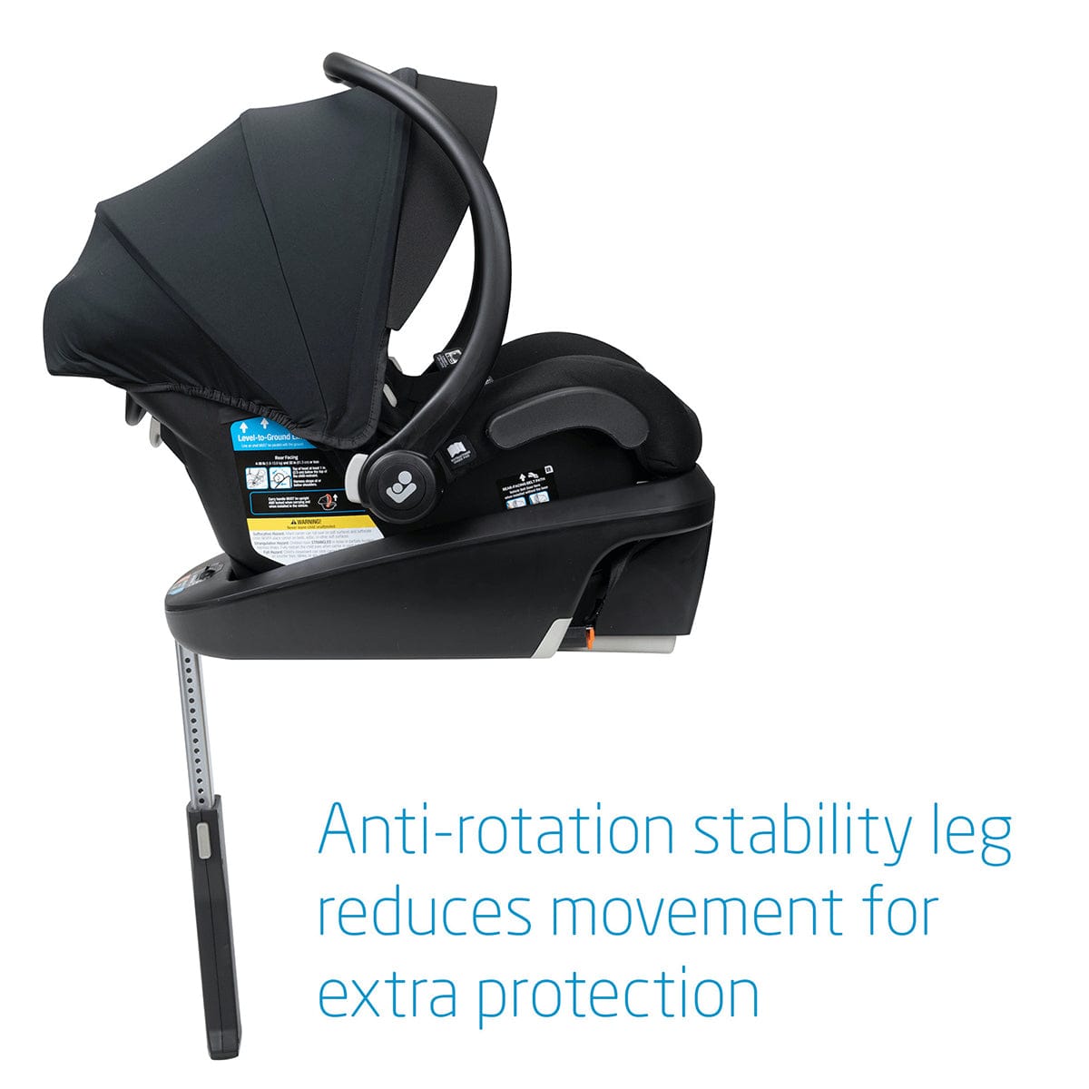 Our patented Air Protect® technology provides superior side impact protection around the head and extends down the side as well. Another improved safety feature is the anti-rotation stability leg that limits back and forth movement for maximum head and neck protection. The stay-in-car base features our MaxiLock™ secure locking system with self-retracting one-click UAS (Universal Anchor System) connectors for quick, easy and secure installation and AutoLock™ belt lock-off for a better fit in your vehicle. For added convenience, the adjustable base includes tightness indicators to provide visual confirmation of accurate installation.