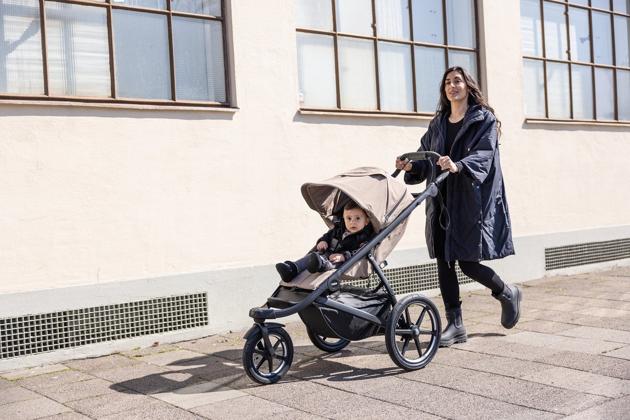 Thule Urban Glide 3 Single Jogging Stroller with NON-Magnetic Buckle + Cup Holder – Tinted Taupe