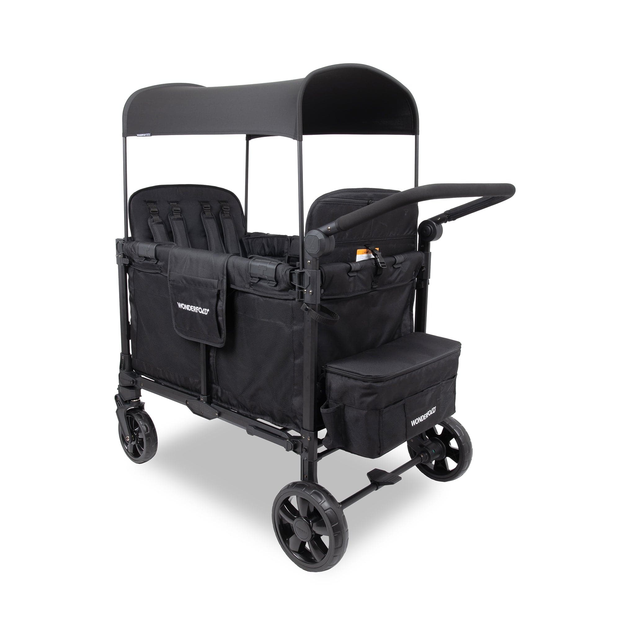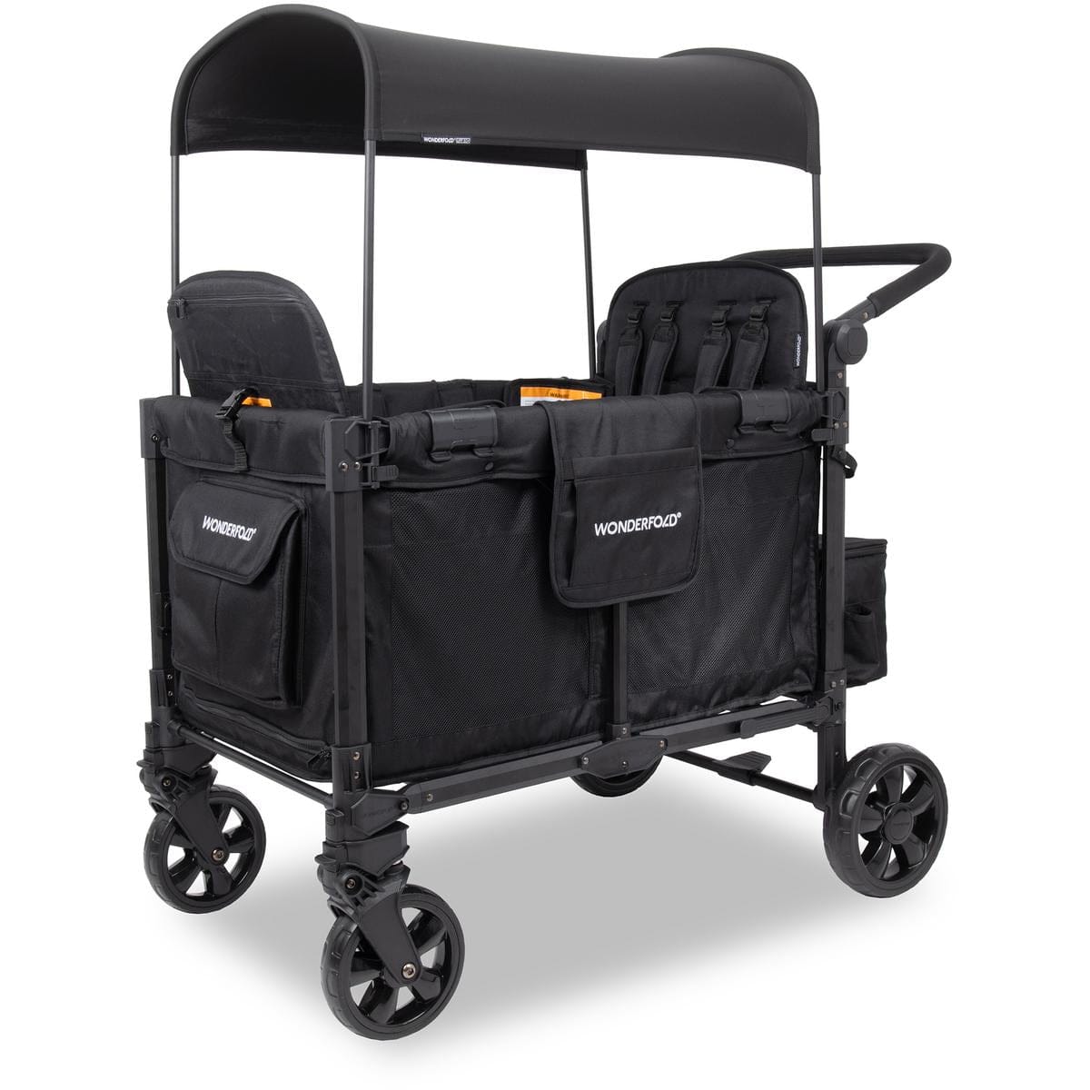 Venture out effortlessly with the W4 Elite Pro Stroller Wagon. It features elevated, reclining seats for a better view, spacious seating for up to four, a lightweight aluminum frame, safety features, and sun protection. Versatile seating can face forward or backward, with removable frames and front-zippered entrances for easy access. With WonderFold, focus on creating lasting memories, not just managing logistics.